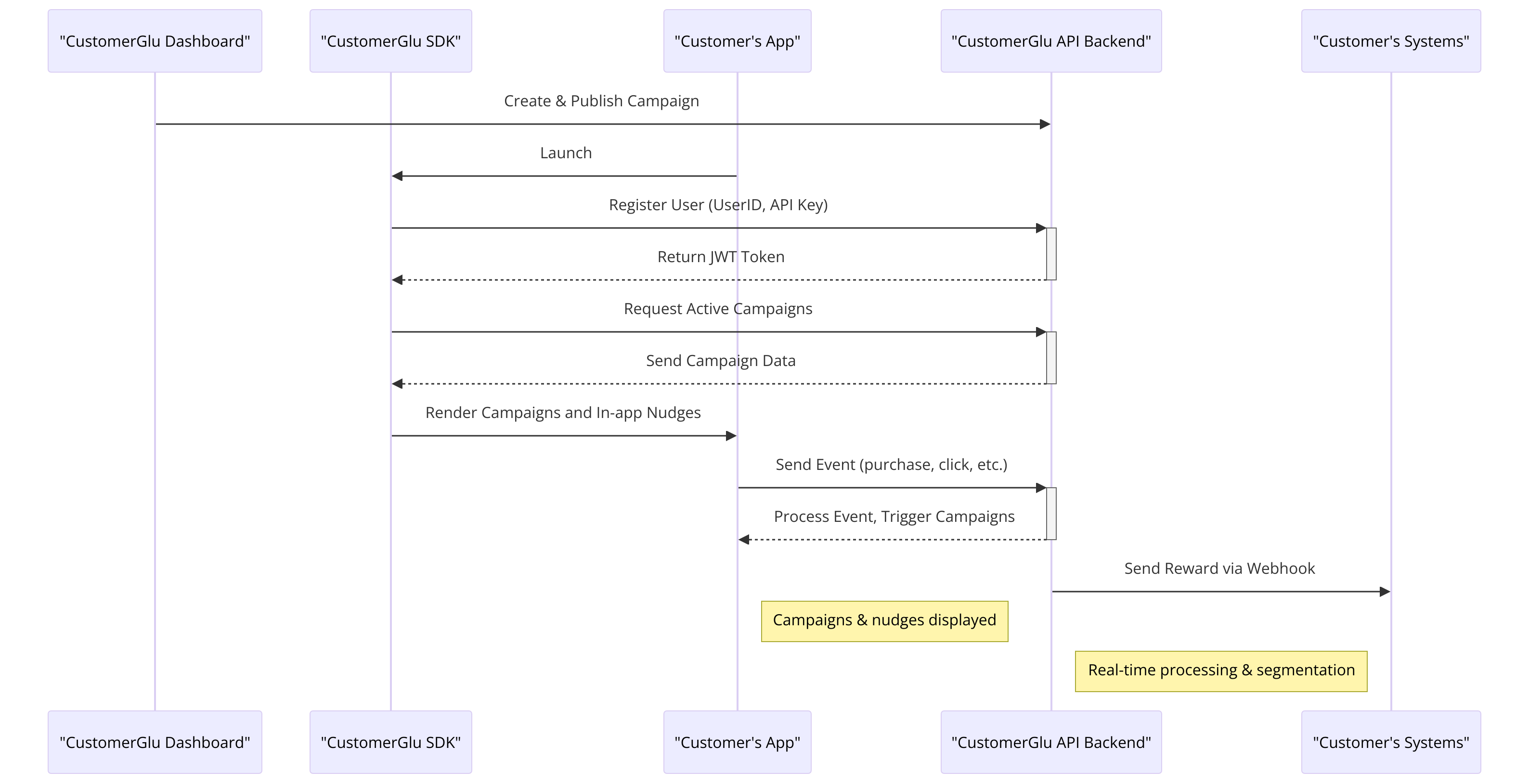 To learn about CustomerGlu, the best way is to understand it via a sequence diagram 👇